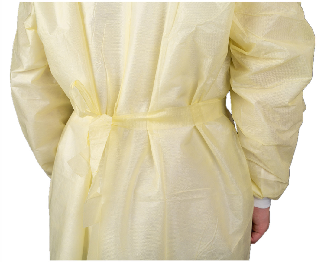 स्तर-2 गैर-चिड़चिड़ाहट वाली एक बार इस्तेमाल होने वाली तरल पदार्थ प्रतिरोधी चिकित्सा उपयोग एसएमएस अलगाव गाउन बुना हुआ कलाई के साथ