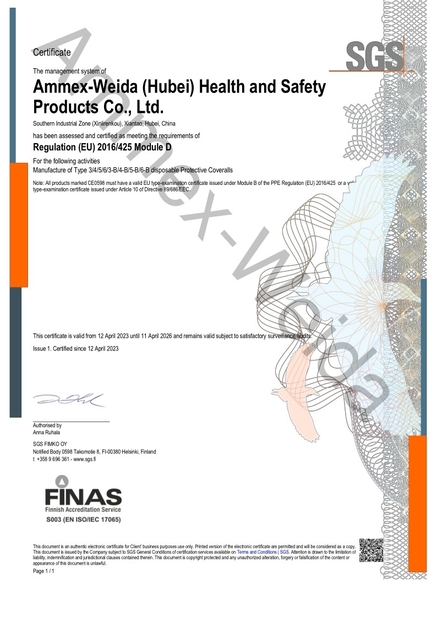 | कार्यक्षेत्र/श्रेणी: | Type 3/4/5/6, Type 3B/4B/5B/6B chemical protective coverall |