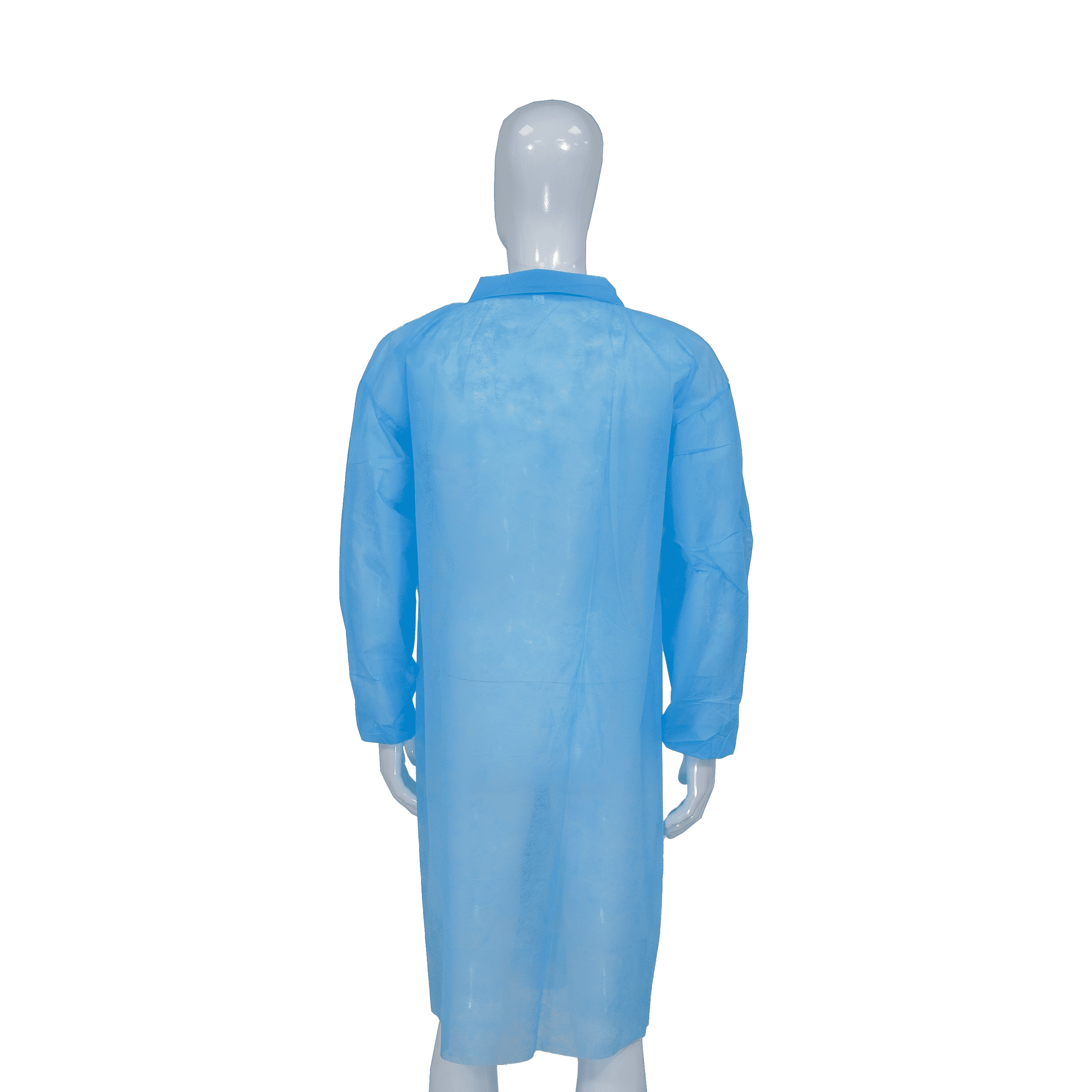 सीई प्रमाणित एक बार इस्तेमाल करने योग्य जीवाणुरोधी सुरक्षात्मक चिकित्सा पीपी/एसएमएस लंबी प्रयोगशाला कोट