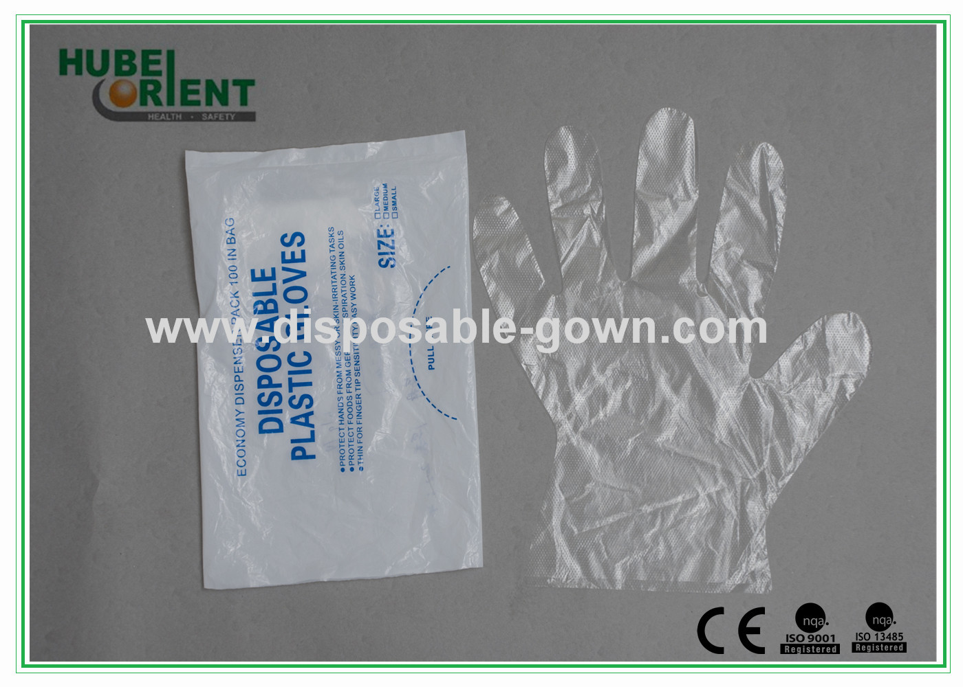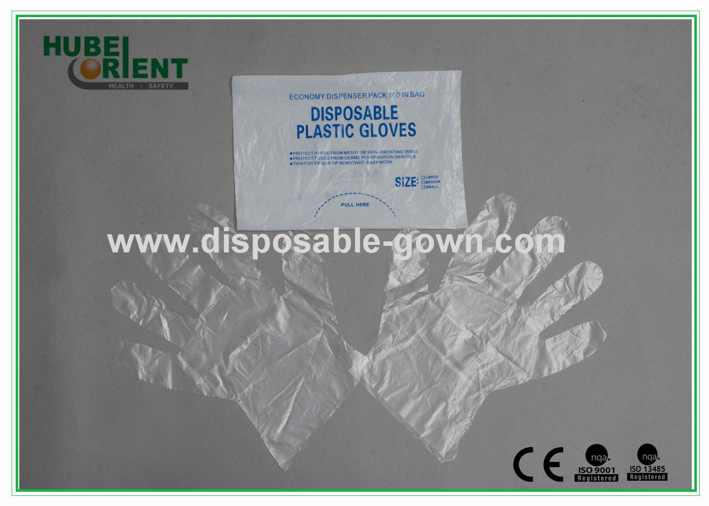 खाद्य पदार्थों के संपर्क में आने के लिए एक बार का उपयोग पीई दस्ताने जलरोधक मुक्त आकार प्लास्टिक दस्ताने