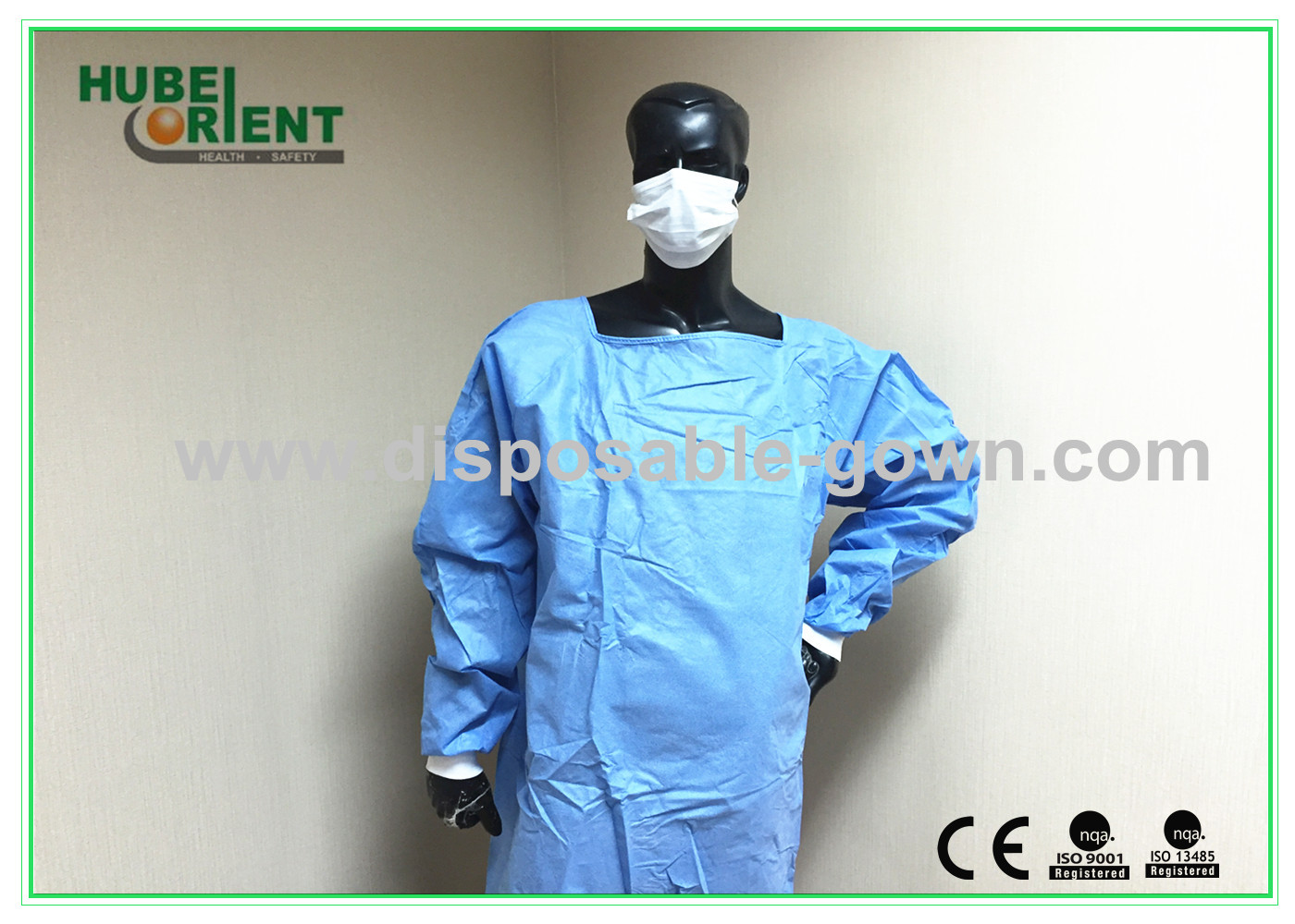 वाटरप्रूफ ब्लू मेडिकल डिस्पोजेबल आइसोलेशन गाउन/ सांस लेने योग्य सुरक्षात्मक सर्जिकल गाउन