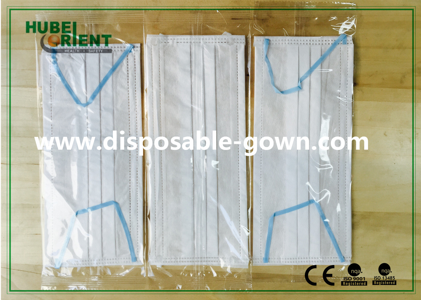 ब्लू पीयू बैंड के साथ डिस्पोजेबल व्हाइट टीईटी मेष झिल्ली फेस मास्क