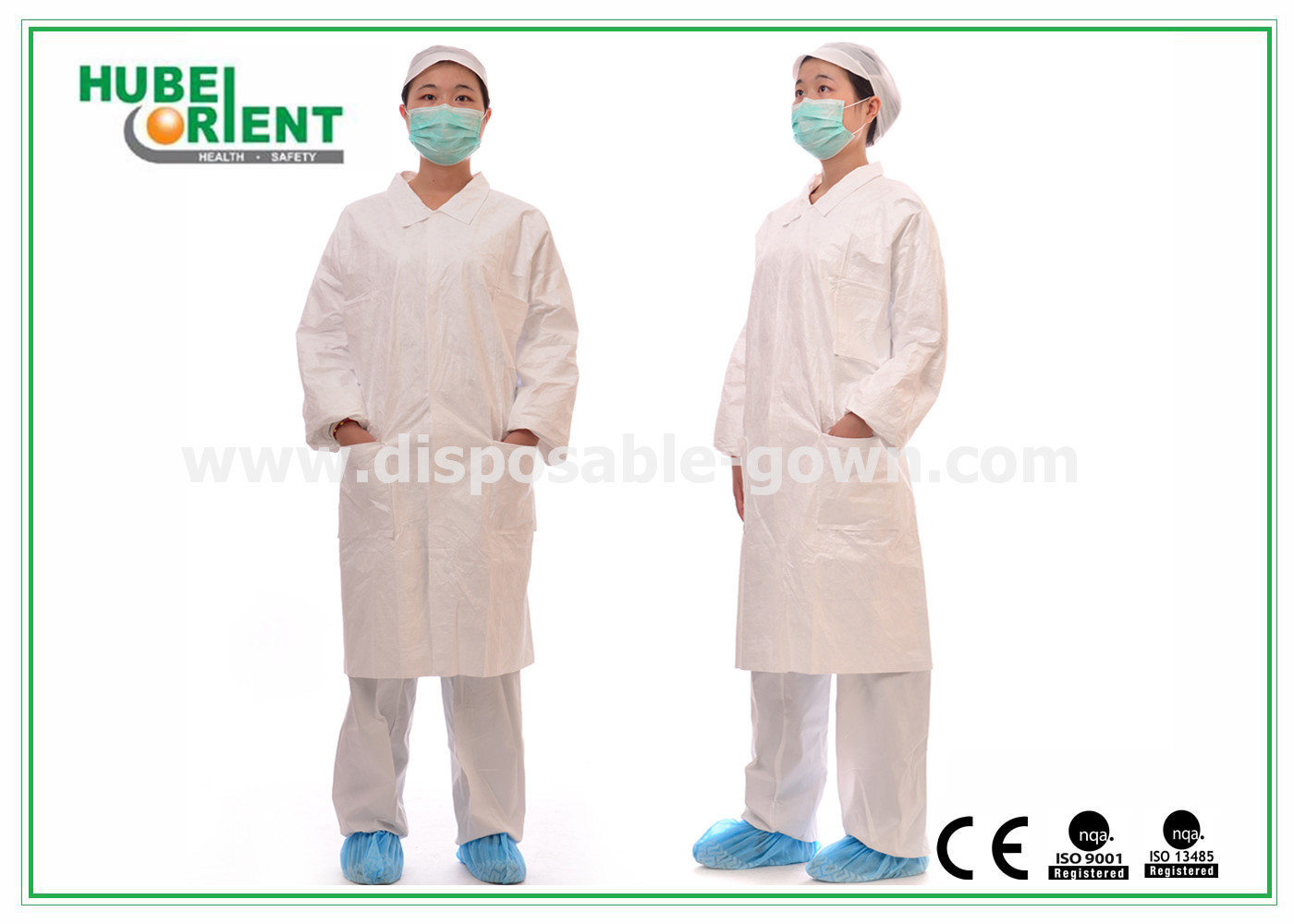 सफेद टाइवेक एक बार प्रयोग करने योग्य प्रयोगशाला कोट/सुरक्षात्मक एक बार प्रयोग करने योग्य प्रयोगशाला कोट सांस लेने योग्य