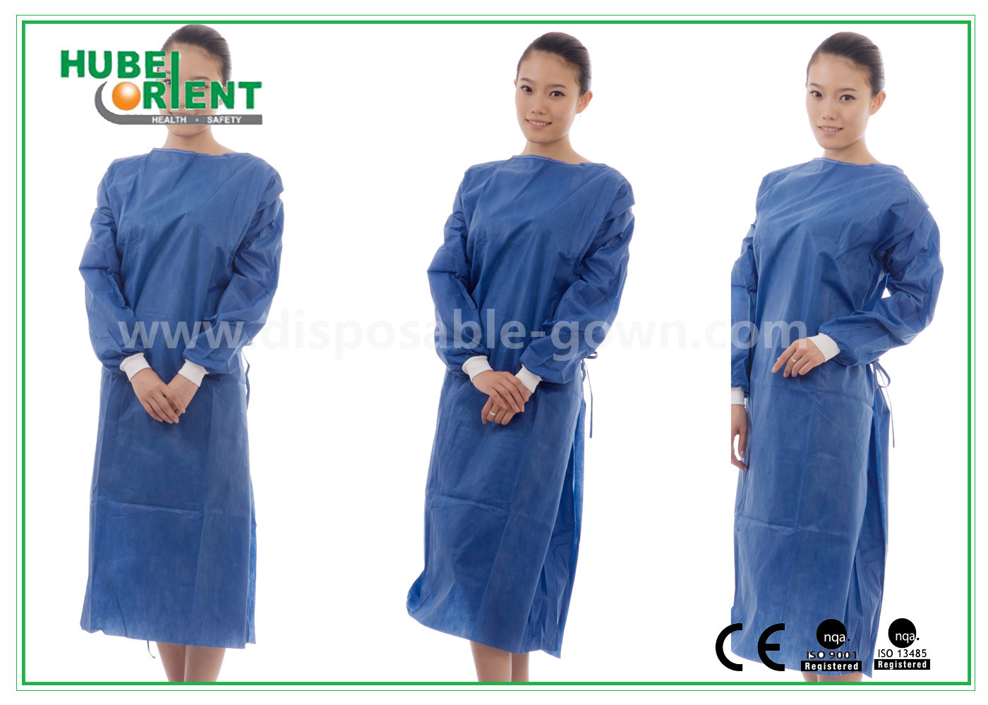 गैर बुना हुआ या एसएमएस नीला एक बार में इस्तेमाल होने वाला अस्पताल स्क्रब लोचदार और बुना हुआ कफ के साथ