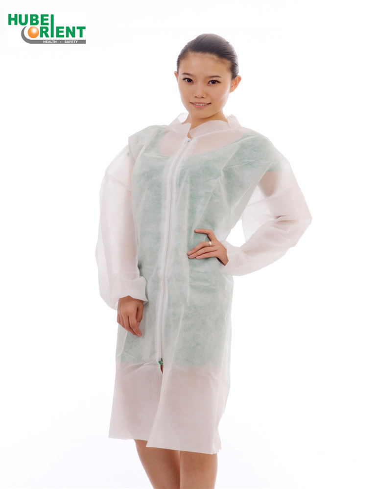 गैर बुना हुआ एक बार इस्तेमाल होने वाला चिकित्सा उपभोग्य सामग्रियाँ जिपर के साथ प्रयोगशाला कोट |