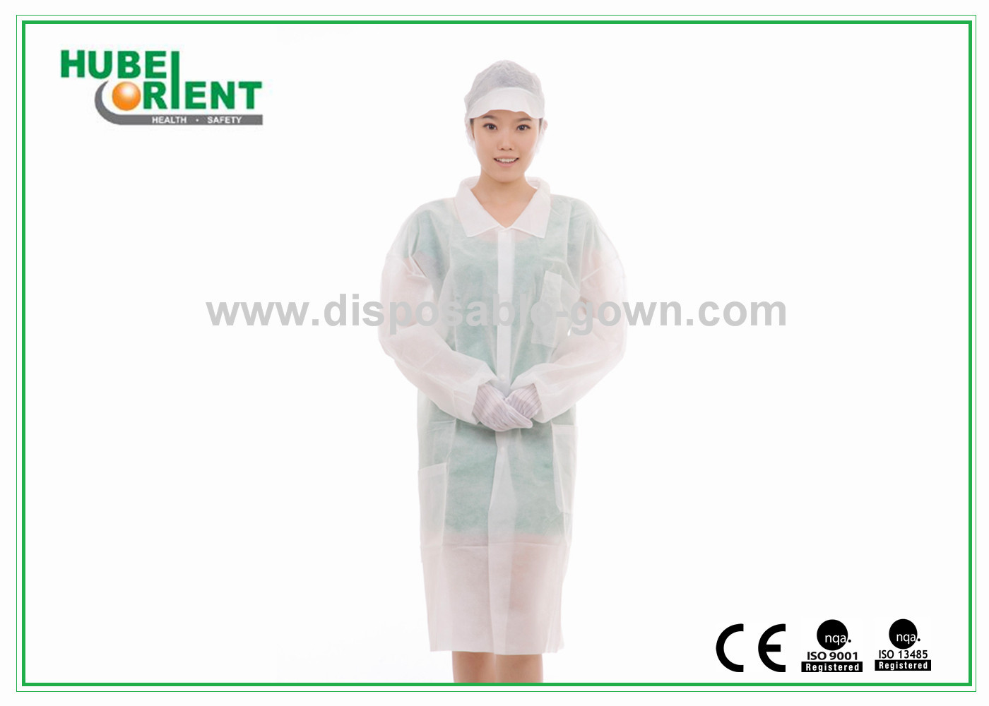 सीई प्रमाणित एक बार इस्तेमाल करने योग्य जीवाणुरोधी सुरक्षात्मक चिकित्सा पीपी/एसएमएस लंबी प्रयोगशाला कोट