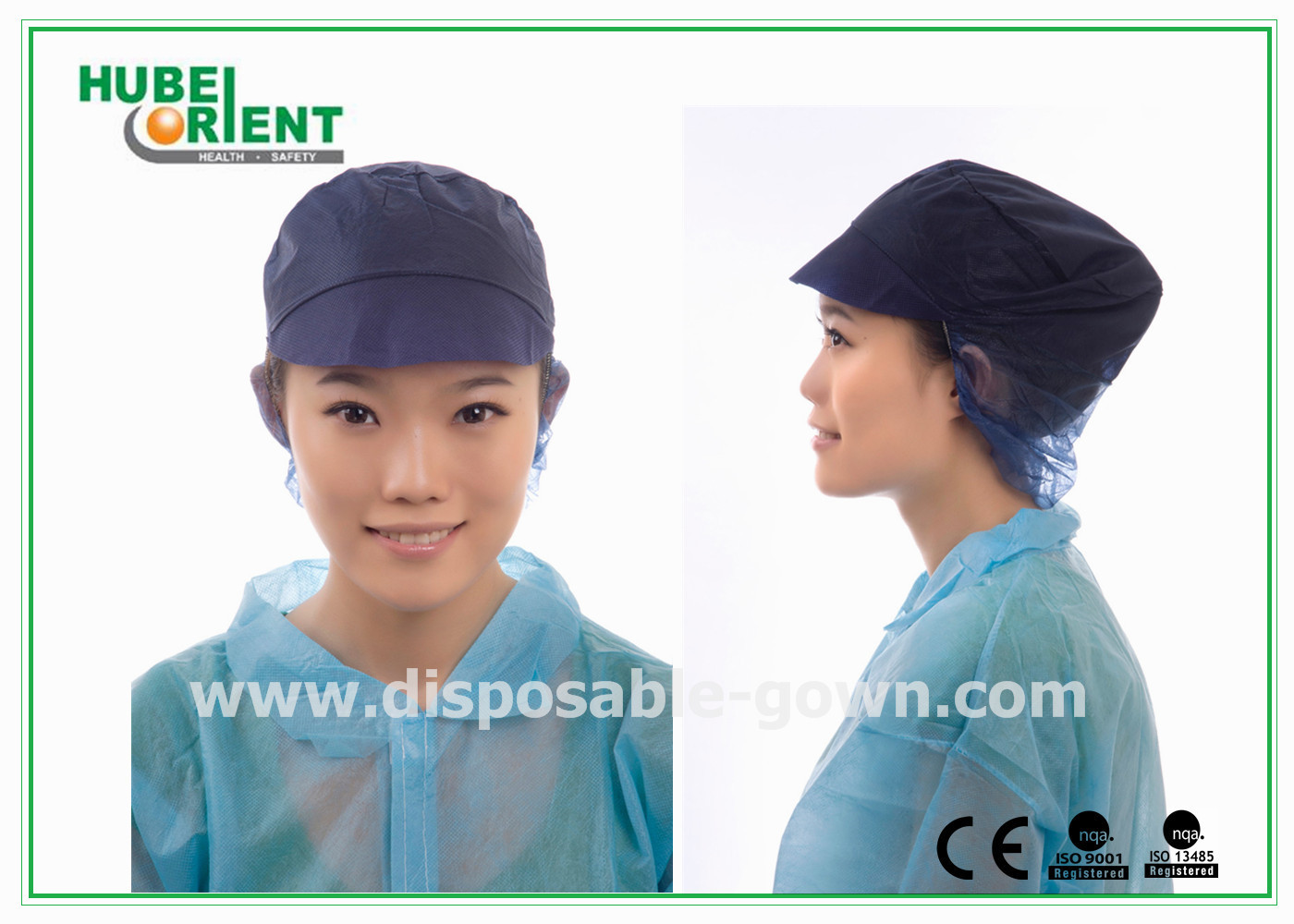 डिस्पोजेबलगैर बुना हुआ सफेद / नीला / गहरे नीले /स्नोड कैप हेड कैप के साथ पीक और हेयरनेट